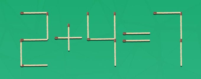Auf den ersten Blick ist dieses Streichholzrätsel sehr einfach, aber unterschätzen Sie es nicht. Um die richtige Lösung zu finden, brauchen Sie Aufmerksamkeit, logisches Denken und die Fähigkeit, Details zu erkennen. Sie müssen die falsche mathematische Gleichung 2 + 4 = 7 aus 16 Streichhölzern korrigieren, indem Sie eines von ihnen verschieben.