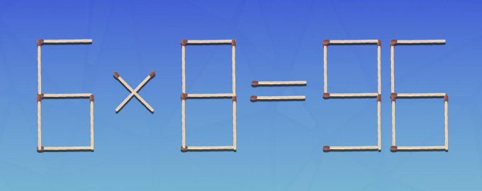 Unten sehen Sie ein Bild, in dem die Gleichheit 6×8=96 aus Streichhölzern besteht. Dafür haben wir 29 Streichhölzer verwendet. Vom mathematischen Standpunkt aus ist diese Gleichheit natürlich nicht korrekt.
