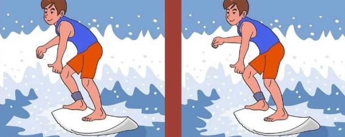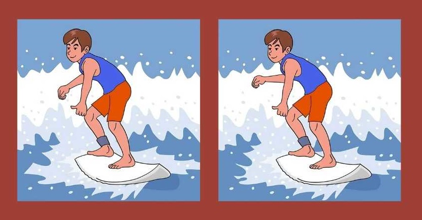 Auf dem Bild sehen wir einen Surfer, der auf einem Surfbrett die Wellen bezwingt. Auf den ersten Blick sieht es so aus, als ob die Typen auf beiden Bildern gleich sind, aber wenn man genau hinsieht, wird klar, dass das nicht stimmt – irgendwo gibt es ein paar Unterschiede, die die Bilder voneinander unterscheiden.