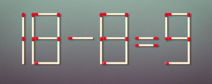 Alles, was Sie tun mussten, war, ein Streichholz von 8 (in der Zahl 18) auf 9 zu verschieben. So konnte man die Gleichheit 16-8=8 erhalten. Das ist mathematisch korrekt.