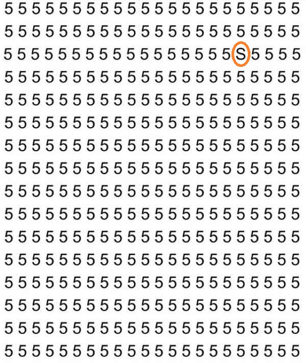 In der folgenden optischen Täuschung müssen Sie den Buchstaben S unter einer großen Anzahl von Ziffern 5 finden, schreibt jagranjosh.