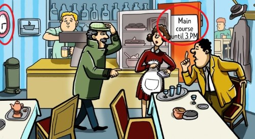 Im nächsten Rätsel müssen Sie erraten, warum der Detektiv die Kellnerin im Restaurant verhaftet hat, schreibt jagranjosh.